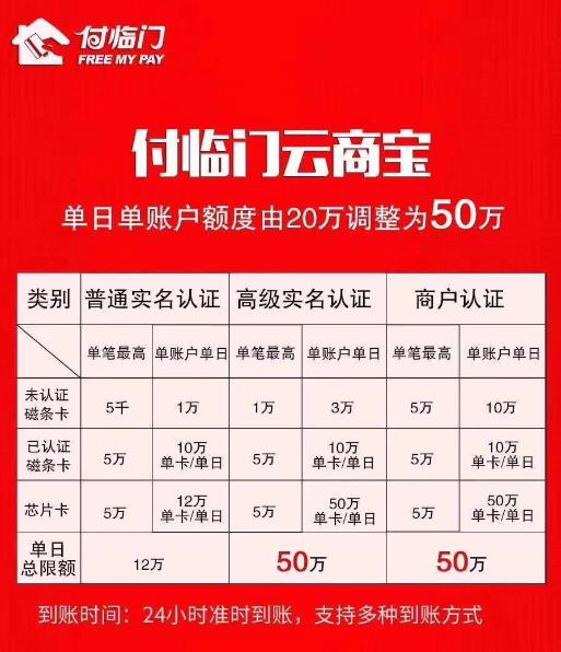 ⑤ 刷卡限額:單商戶單日總額度50萬;非芯片卡未認證單卡單筆最高1萬,單日單商戶最高3萬;非芯片卡已認證單卡單筆最高5萬,單卡單日最高50萬;芯片卡單卡單筆最高5萬,單日單商戶最高50萬;微信/支付寶掃碼支付單卡單筆最高500元,單日單商戶最高3000元。