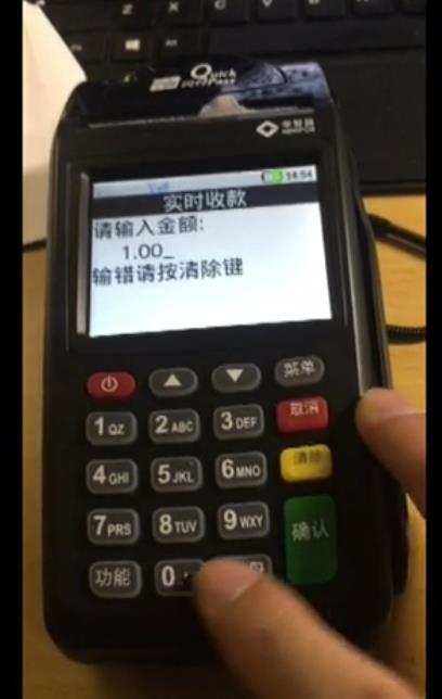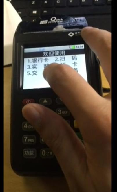 4. 按確定鍵進入主菜單頁面,此時可以選擇“1、銀行卡”刷卡T+1到賬,或選擇“3、實時”刷卡S+0秒到賬;