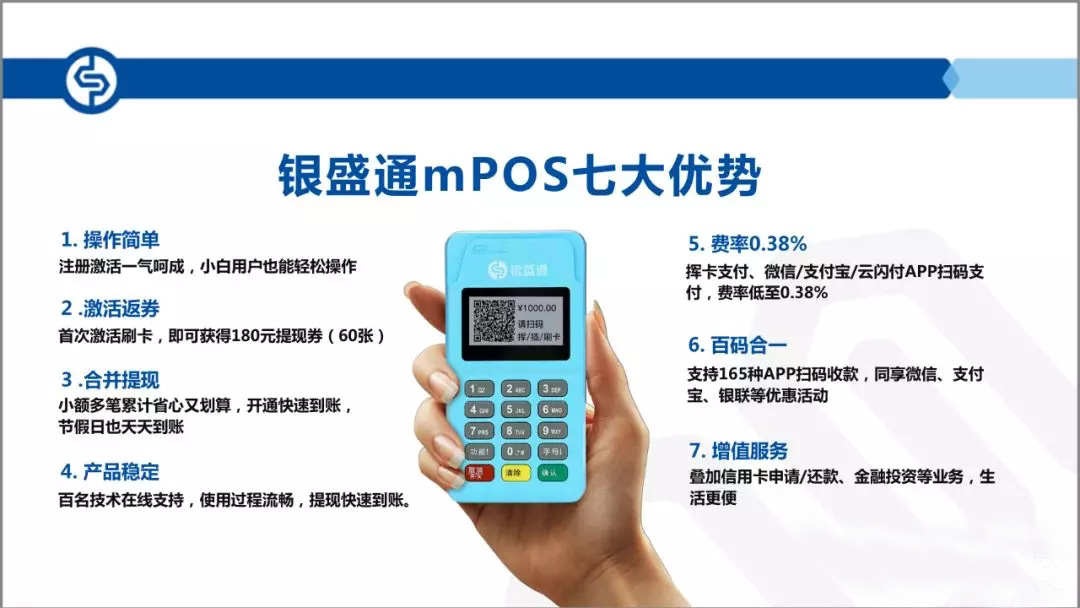 銀盛通的優(yōu)勢(shì)是微信支付寶(唯一可以微信支付寶還能變商戶的,當(dāng)然其刷卡費(fèi)率0.6也很不錯(cuò)!)