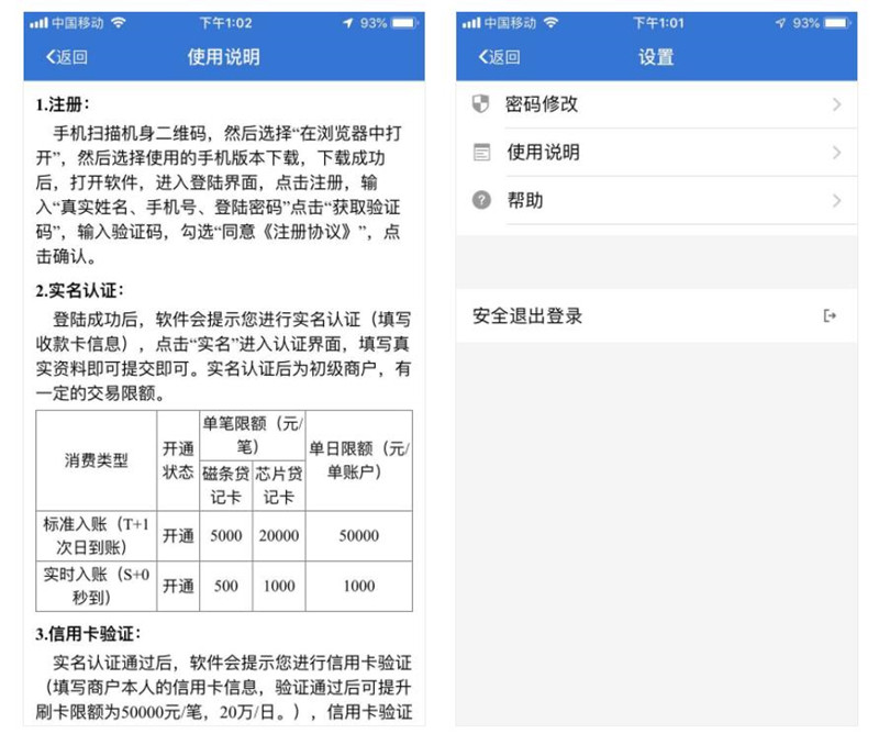1、刷卡收款:支持D1、S0刷卡收款;