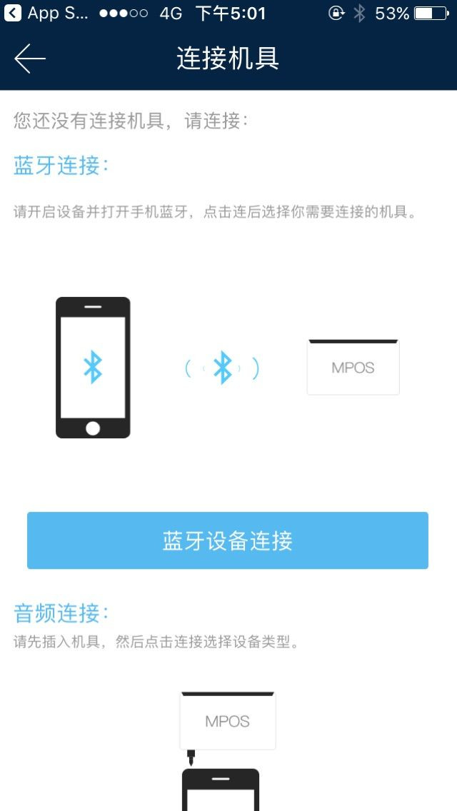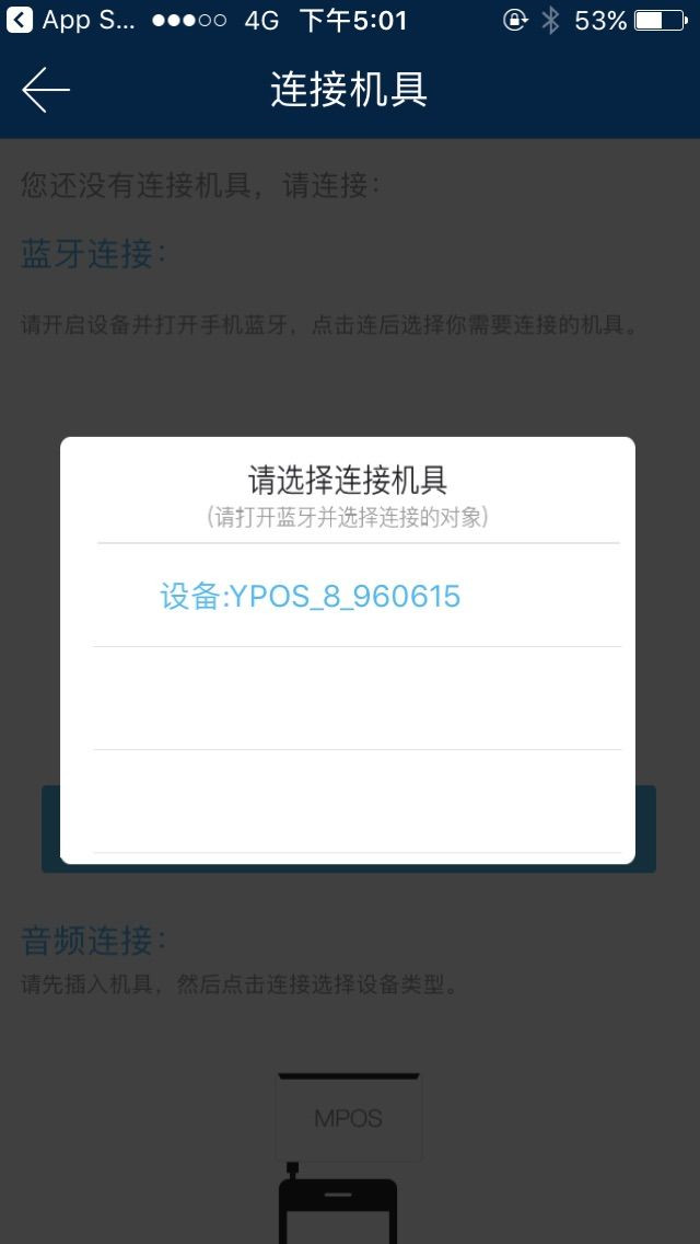 確認手機開了藍牙,刷卡機也要開機,點擊屏幕上的藍牙設(shè)備連接