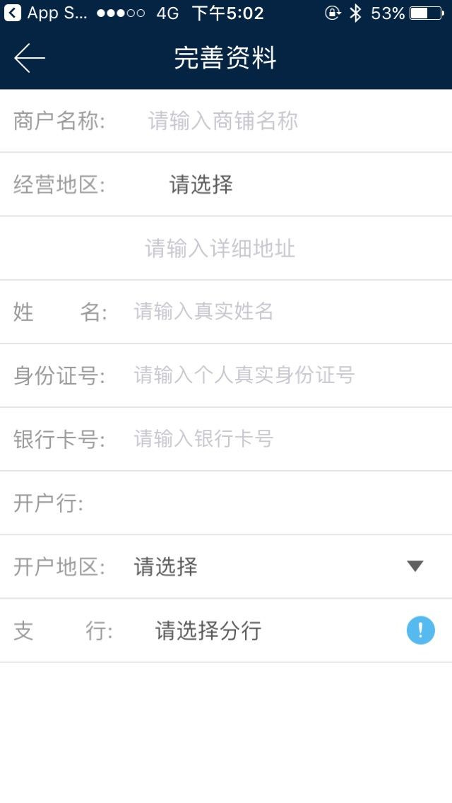 注冊后登陸進去會提示完善資料,點擊完善資料